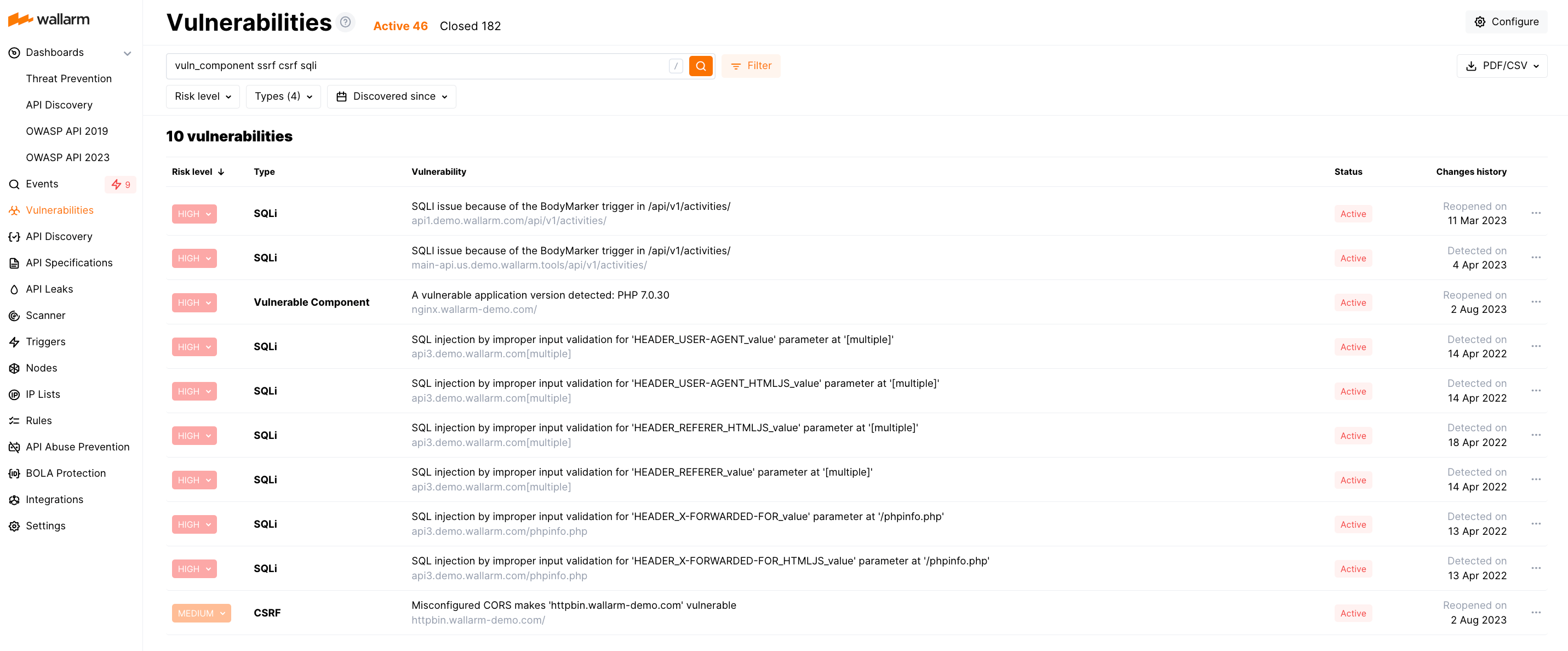 • Virtual patches for urgent issues highlighted by Wallarm's vulnerability detection.