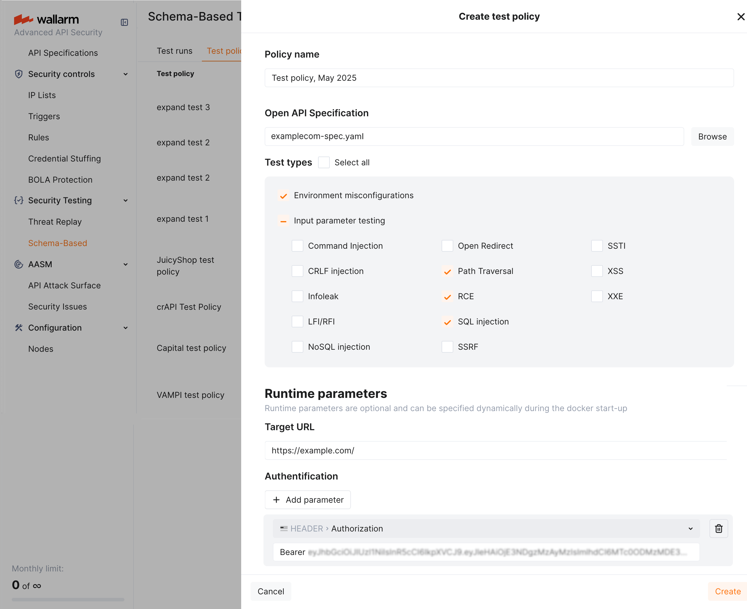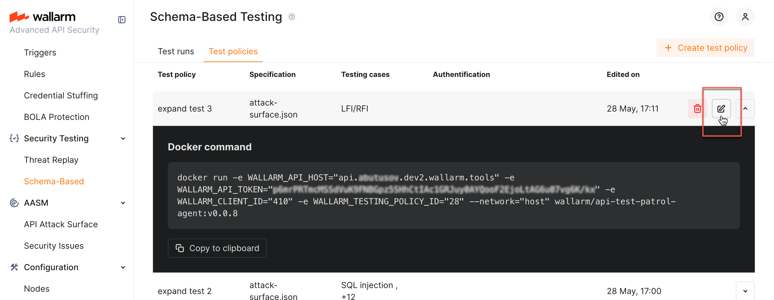 Go to Wallarm Console → Security Testing → Schema-Based → Test policies.
