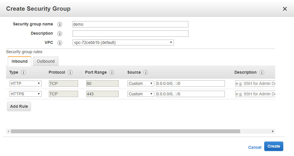 To see detailed information about creating a security group, proceed to the AWS documentation.